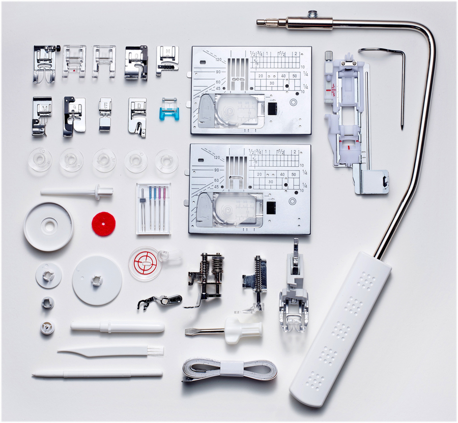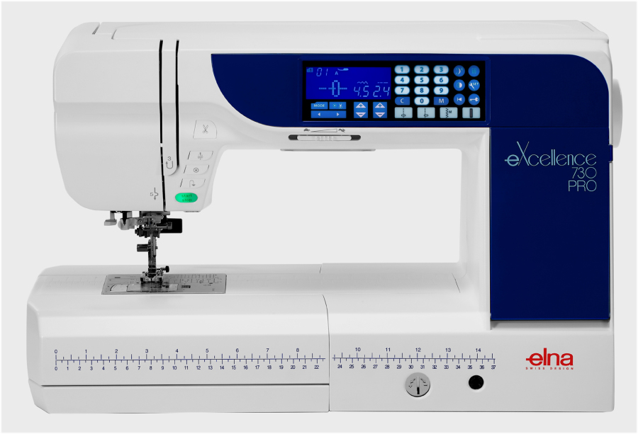 Bei der Elna eXcellence 730 Por ist alles übersichtlich angeordnet, alles ist auf einen Blick ersichtlich und genauso schnell eingestellt. Die vielen Nähfüsse und das übrige Zubehör sind im praktischen Elna Frontfach und im Deckel verstaut und schnell erreichbar. Der extra hohe Nähfußhub ermöglicht eine einfach Führung auch von dickeren / voluminösen Stoffen und dank der per Handschalter entriegelbaren Stichplatte, lässt sich die Elna 730 Pro sehr einfach reinigen und warten.