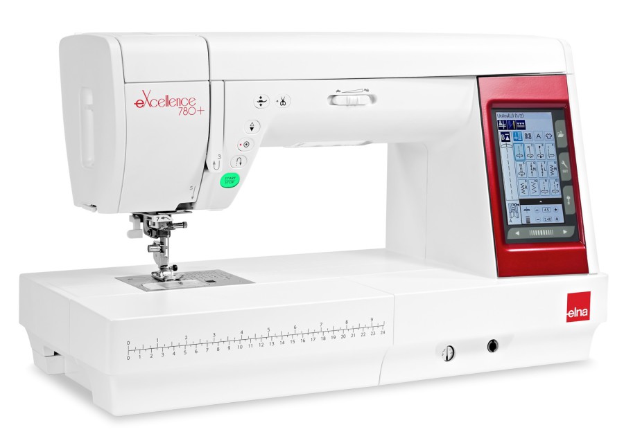 Die Elna Nähmaschine eXcellence 780+ ist eine außergewöhnlich hochwertige Computernähmaschine, die mit ihrer Ausstattung zu den Spitzenmodellen auf dem Nähmaschinenmarkt gehört. Die unzähligen Funktionen sind ganz einfach und intuitiv zu bedienen, sodass Sie ihr Nähprojekt ohne Probleme umsetzten werden. Das ergonomische Design der Maschine schafft einen großzügigen Nähbereich mit einer Breite von 280mm. Damit ist die Elna 780+ perfekt für große Näh- und Quilt-Projekte geeignet.