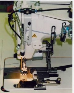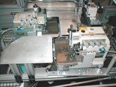 Pegasus Left Hand Maschine und Standard-Überwendlich-Nähmaschinen für den Automateneinsatz; um automatisch die rechte und linke Stoffkante gleichzeitig zu versäubern.